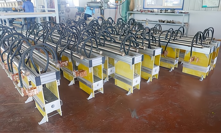 Корпуса индукционных печей выполнены по принципу быстрой смены: при переходе на другой диаметр прутка оператору достаточно заменить соответствующий корпус печи без серьёзной перестройки всей линии. Это существенно сокращает время переналадки и повышает гибкость производства.